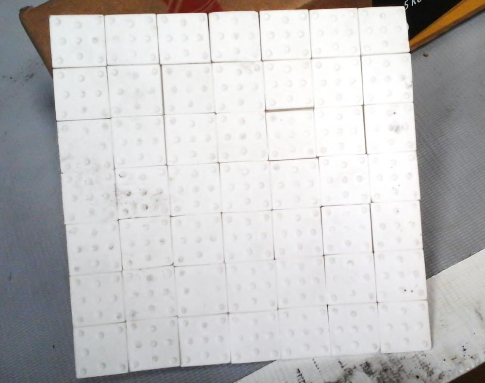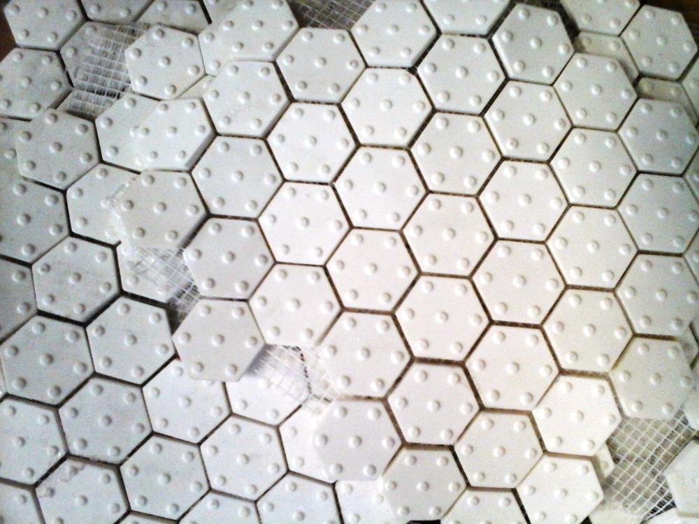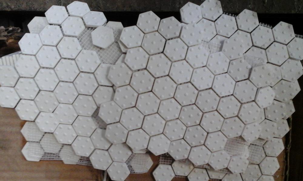 La cerámica alta alumina 92% se comercializa en kits para su colocación directa por parte del usuario. Cada kits contiene 1m2 0 1.3 m2 de cerámica hexagonal o cuadrada de 3 mm de espesor, los adhesivos epoxi y un completo instructivo para llevar adelante el proceso de colocación.